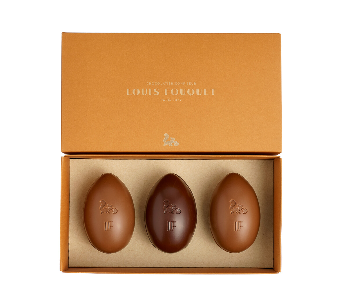数年前、メゾン名をFouquetから創業者のフルネームLouis Fouquetに変更した。そのイニシャルLFとメゾンのマスコットのリスが刻まれたイースター・エッグ・トリオ。38ユーロ。