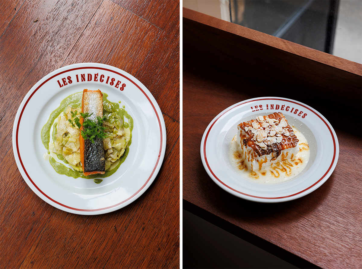 左:メインにはその日の魚料理も。 右:イル・フロッタントやリ・オ・レといったブラッスリーおなじみのデザート。photography: ©AliceCasenave