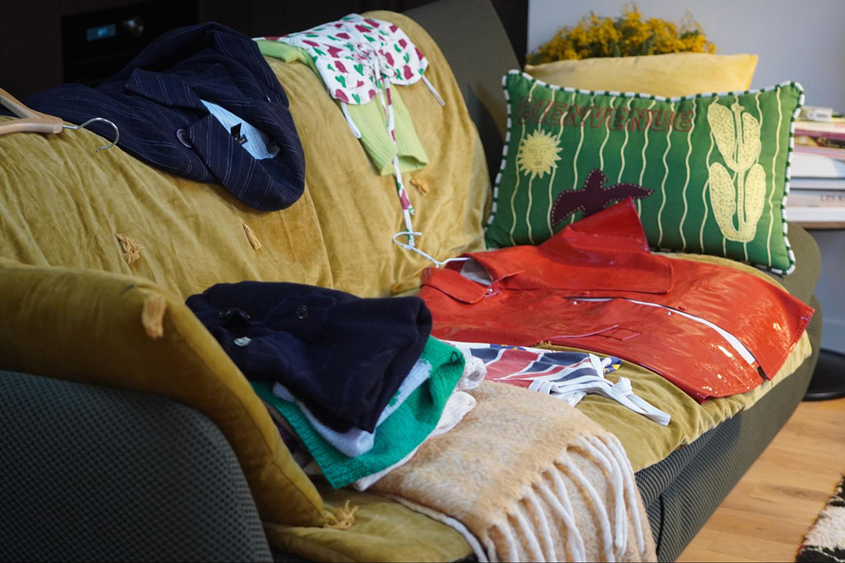 クローゼットに目を向けると、洋服が収まりきらず、キッチン上部の本来お皿用の棚まで服で埋め尽くされている。(私のアパルトマンも収納が足りないけれど、こういう解決策があったか!)そしてその中身は、ほぼヴィンテージ。