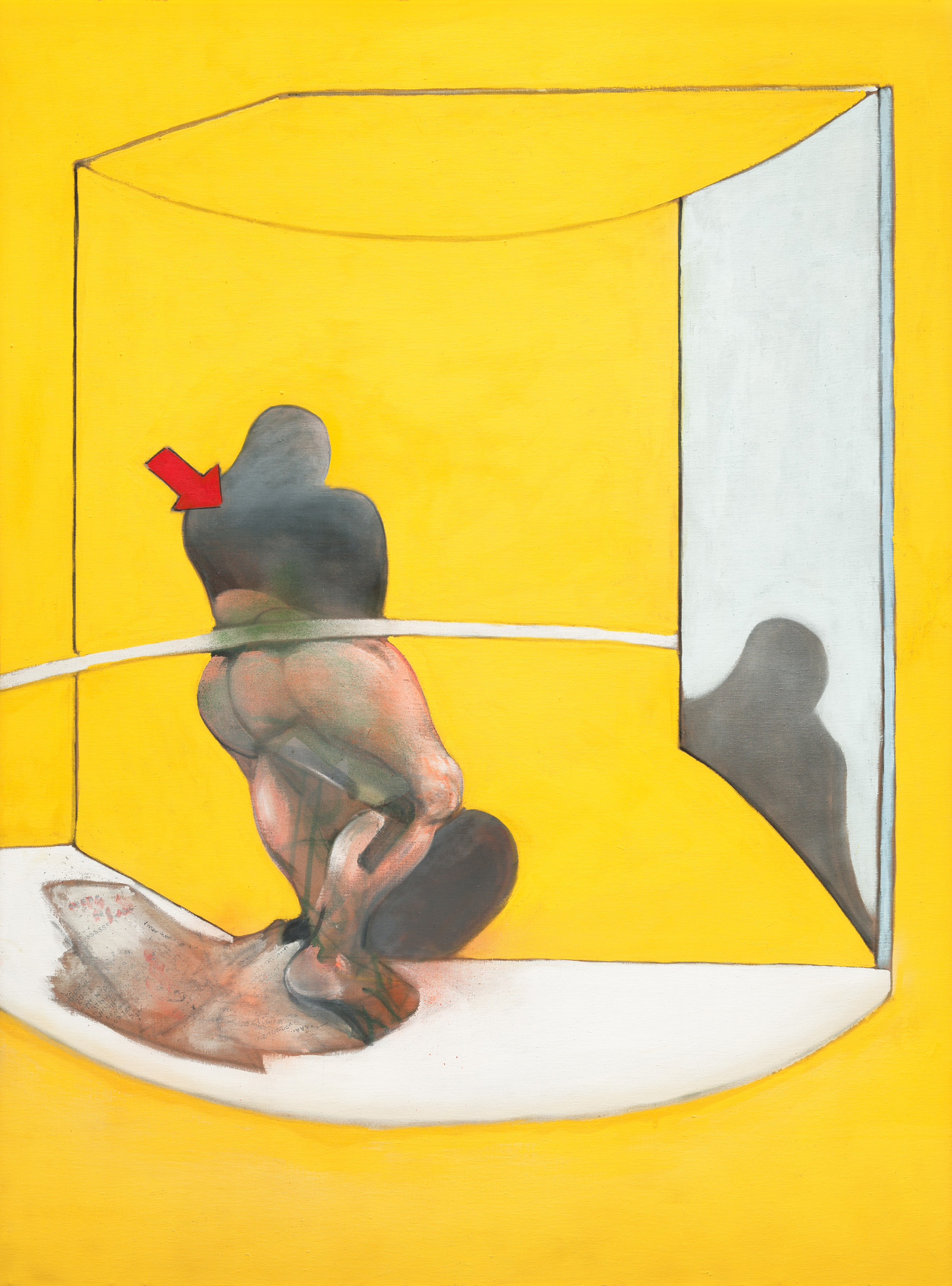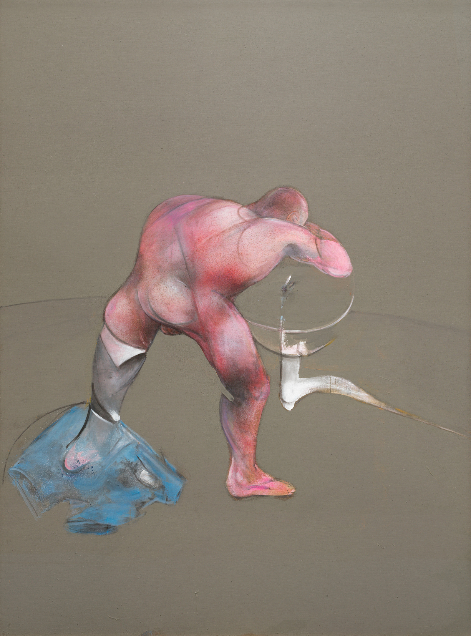 展示されているのは『Study from the Human Body – Figure in Movement』(1982年)、『Study from the Human Body 』(1986年)、『Man at the Washbasin』(1989~90年)の3点。いずれもサイズは198.1×147.3cmと大型である。これは例えば「部屋の中の3人の人物」(1964年)のようなトリプティックではないが、際立った簡素さという特徴を共有する3点で、こうして並置しての展示は今回が初めてとのこと。洗練された建築的構造と緻密な構図は、ベーコンの表現によるところの「生きた経験の複雑さにアプローチするための一種の略記法」を反映している。