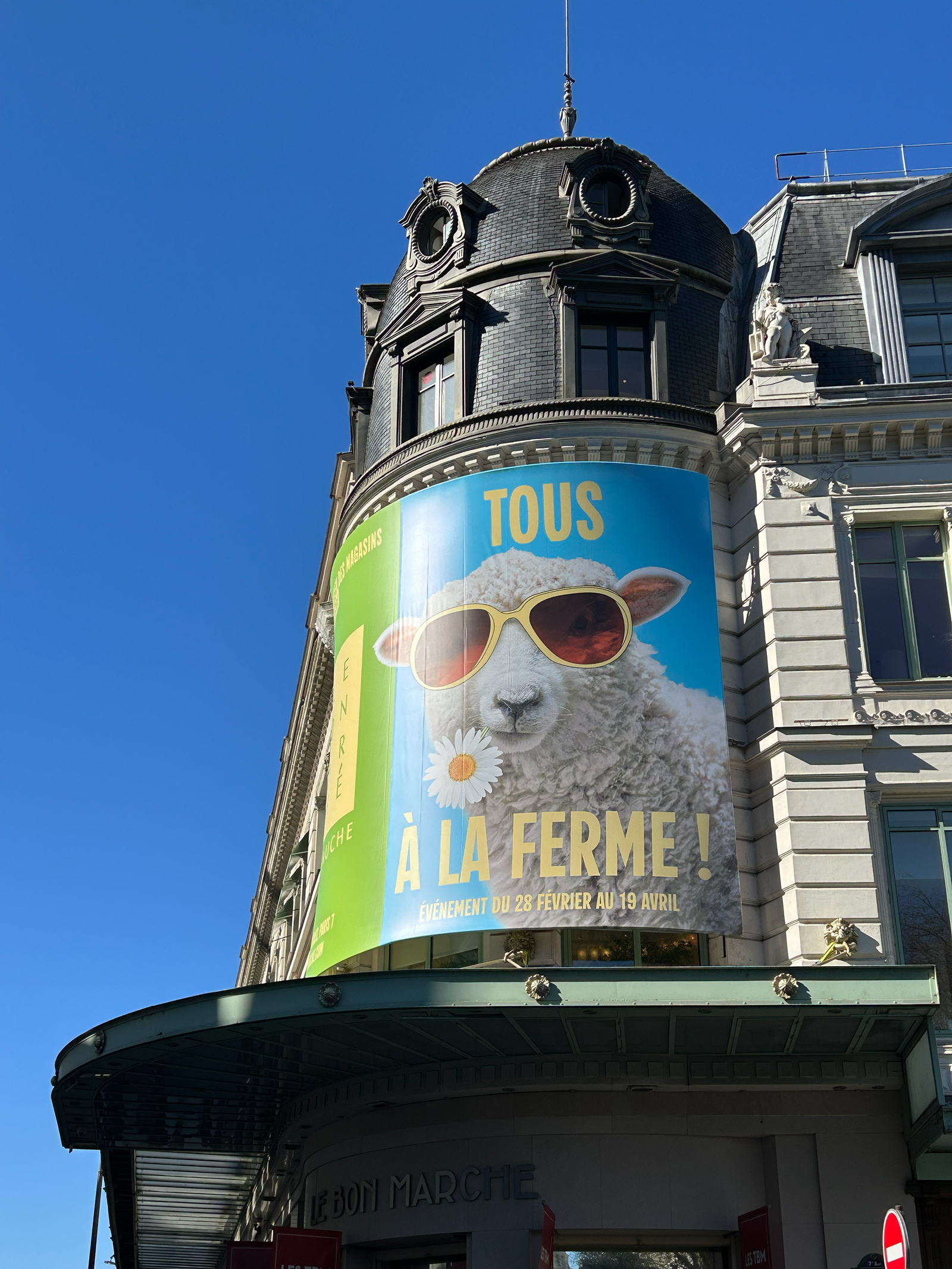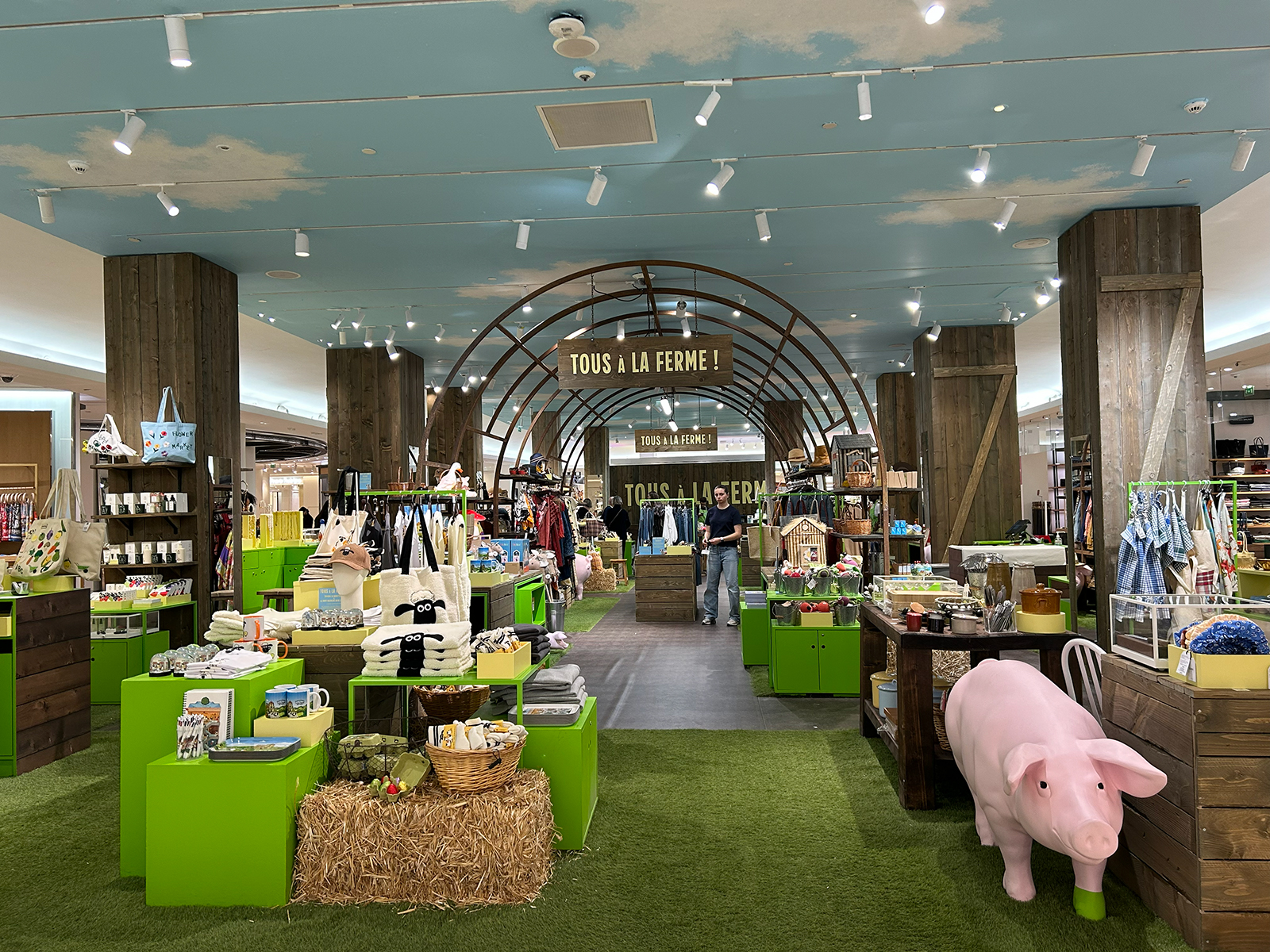 2月21日から4月19日までの間、百貨店ル・ボン・マルシェが開催していた『Tous à la Ferme !』(みんな、農場へ!)展は、パリジャンの農業への関心を百貨店らしい形で演出したものだろう。売り場に並んだのは動物モチーフの小物、天然素材の服や生活雑貨、ビオの野菜や果物。支払い時にはレジで少額の寄付が提案され、困難に直面する農家を支える団体Solidarité Paysans(農業連帯)に送られる取り組みもされていた。