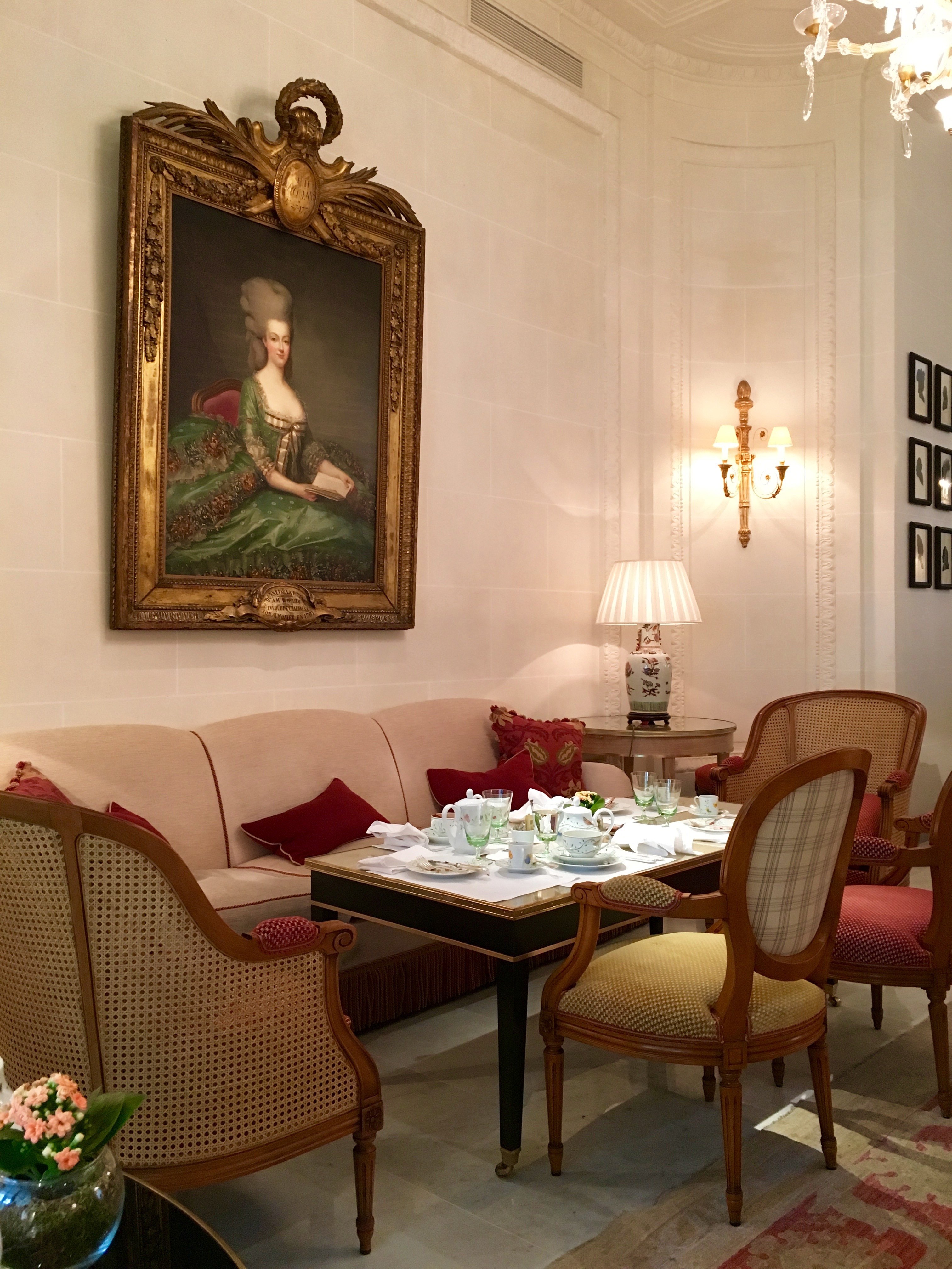 マリー・アントワネットの肖像画のあるカフェ・アントニアは、いつ来ても乙女心をくすぐられてうっとり。