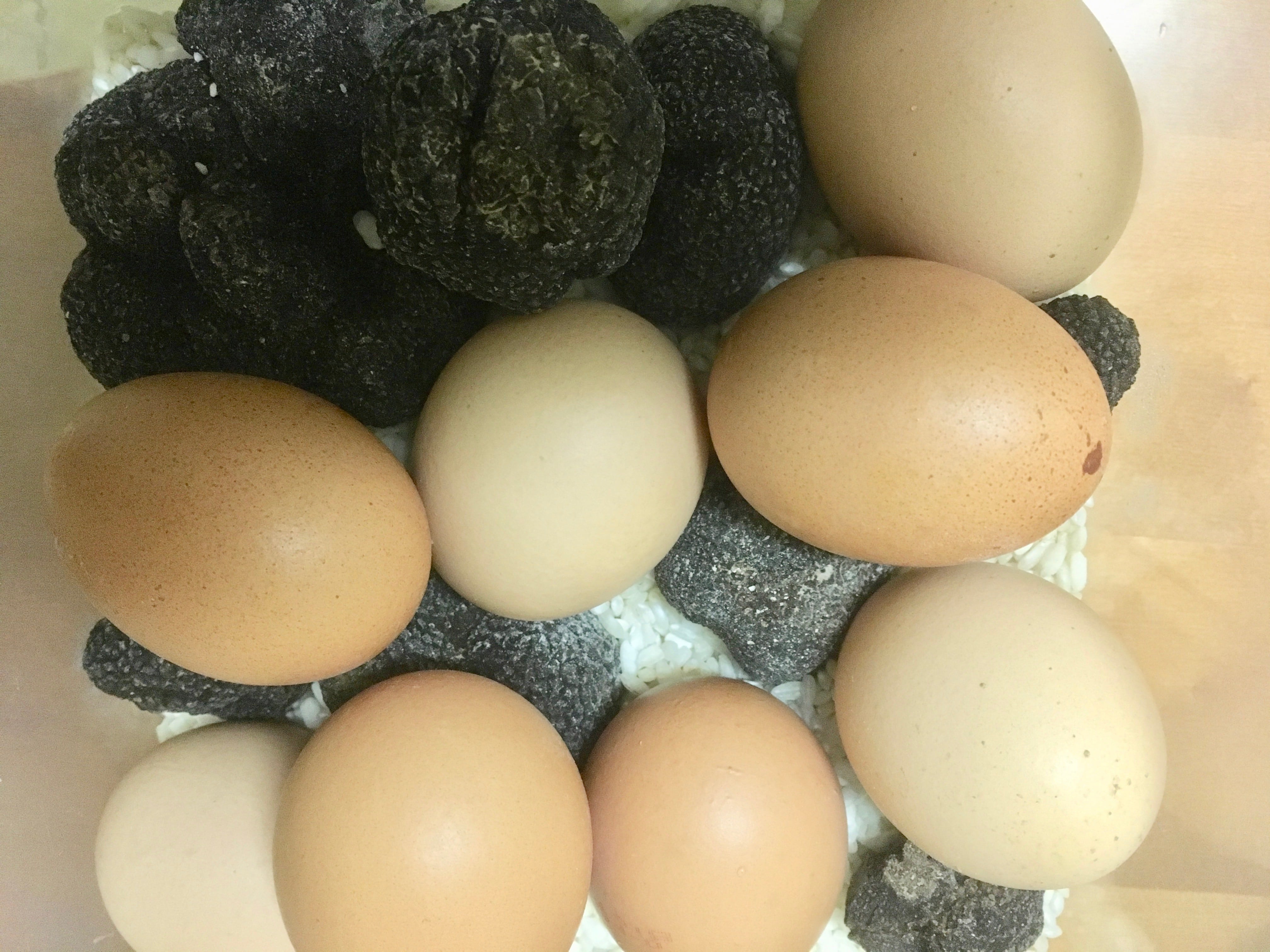 先日ペリゴールに行ったときトリュフを買ってきたので、プルハウスの卵とお米と一緒に保管。フランスではトリュフはこうして卵とお米を一緒のケースに入れて、トリュフの香りをお米と卵に移してから料理します♪