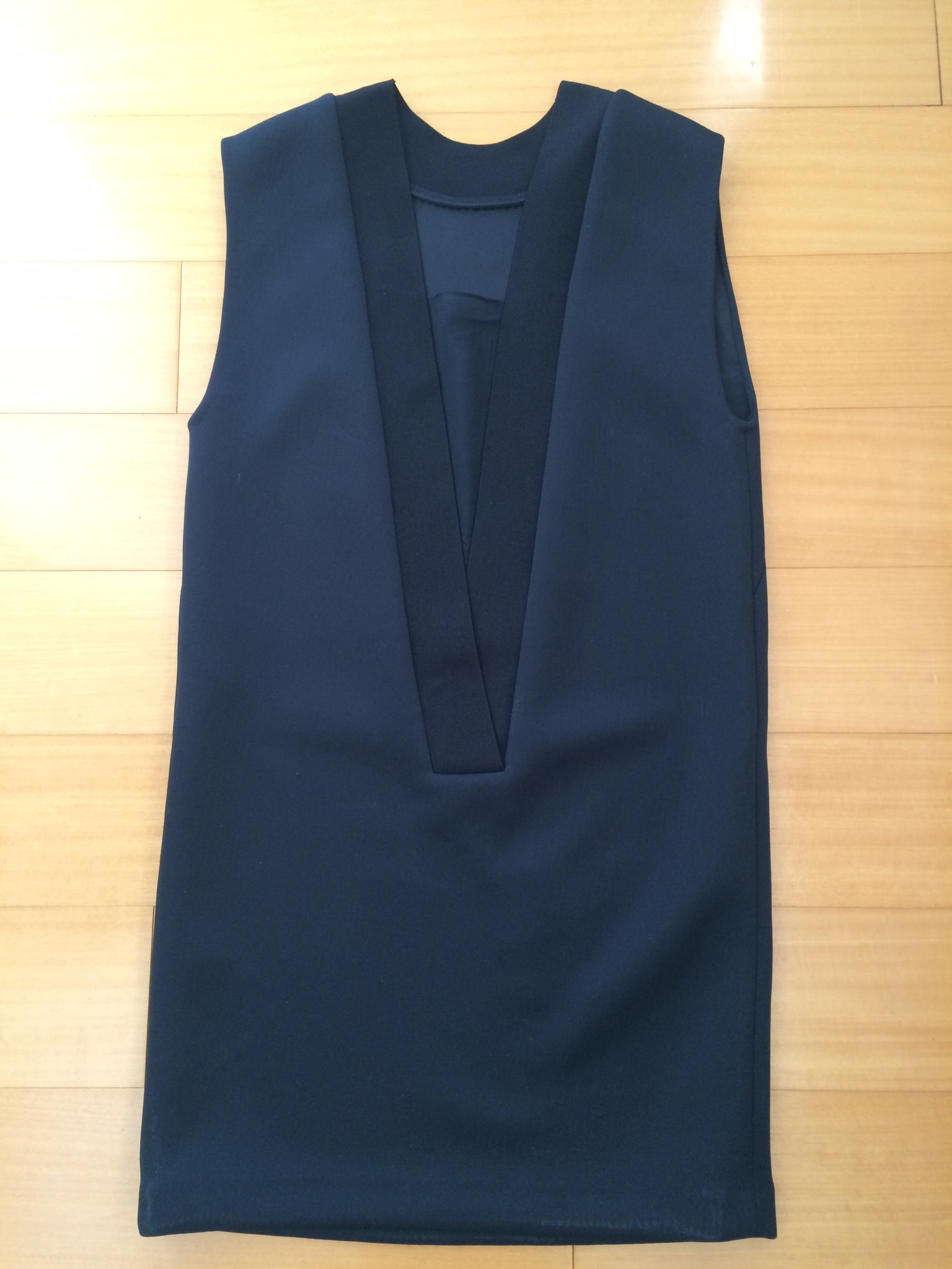 着るとストンと筒のようなシルケットで、腕まわりの両脇は広めに開いてます。