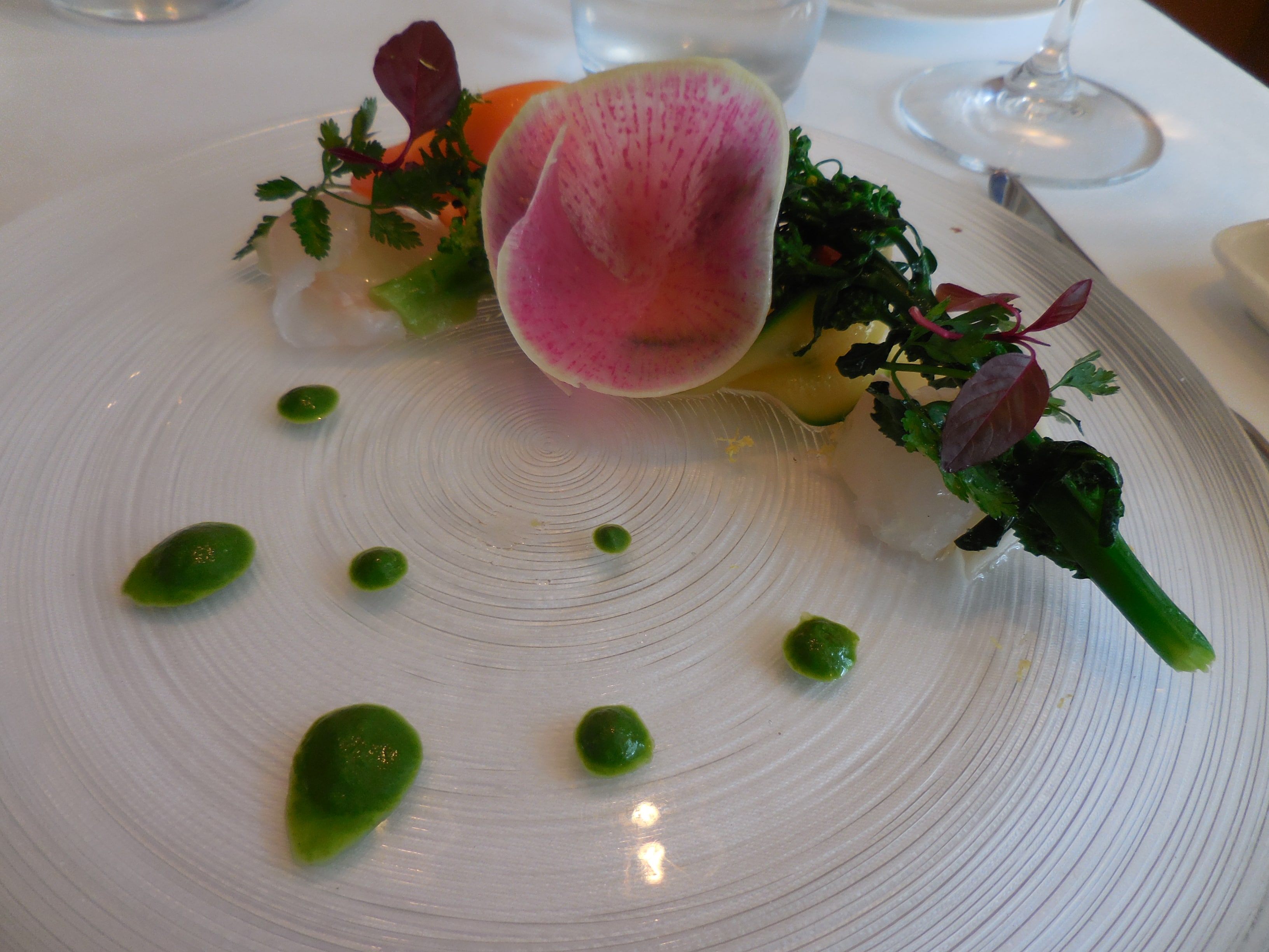 パレットに並べた絵の具のようにカラフルな野菜たちと弾力のある鯛(だったと思う)。