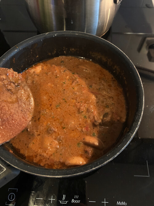 夫「ミートソースにアーモンド合わせて大丈夫じゃない?スペインのミートボールってアーモンド入るらしいよ」