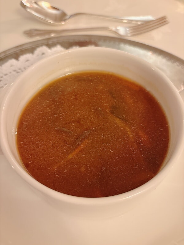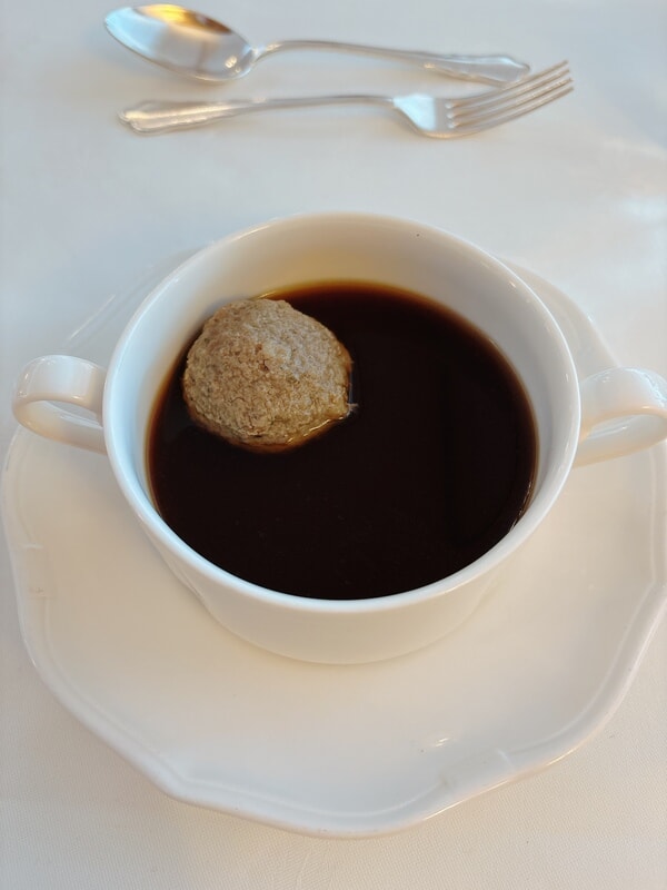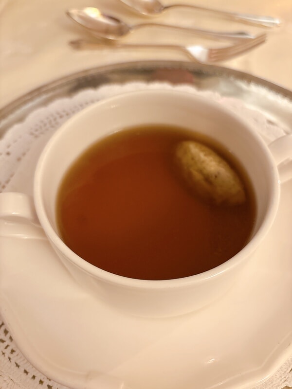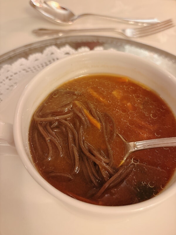 夫「なにかしら浮き身的なものは入るのがオーストリアの、ここのスープの特徴だからね。蕎麦とはある意味斬新だ☆」