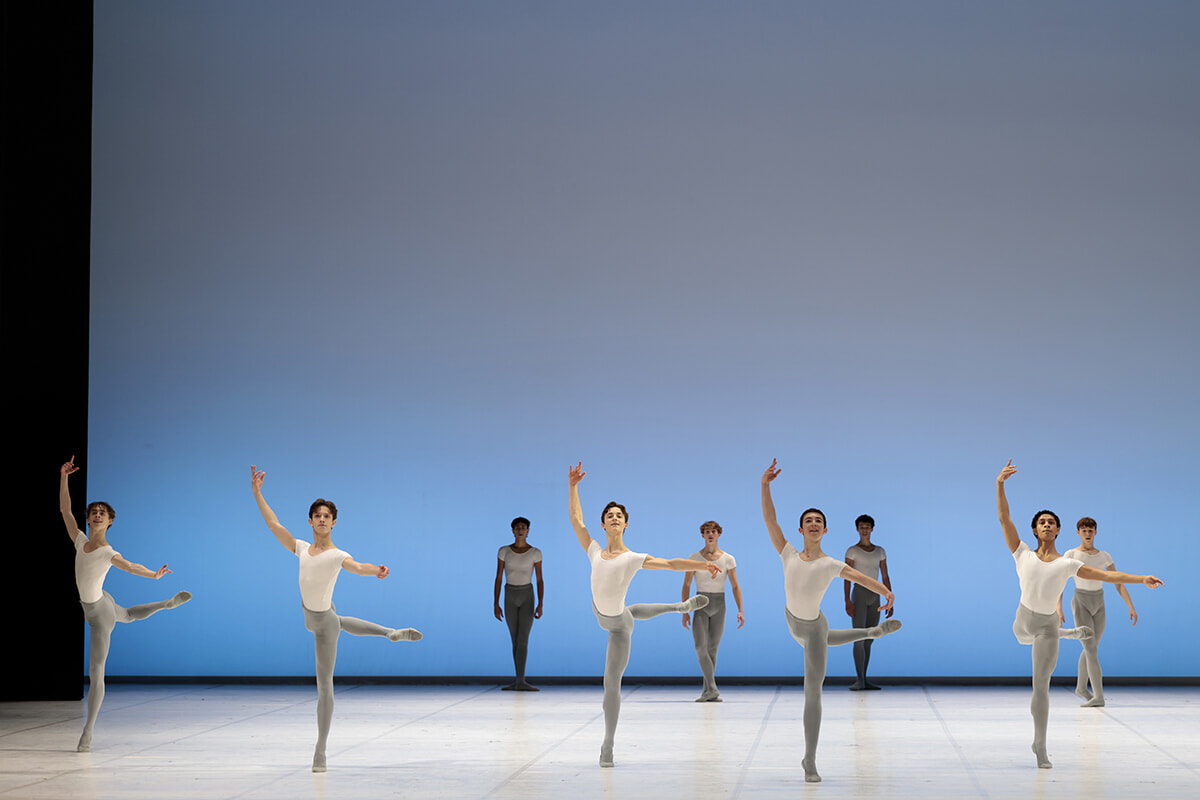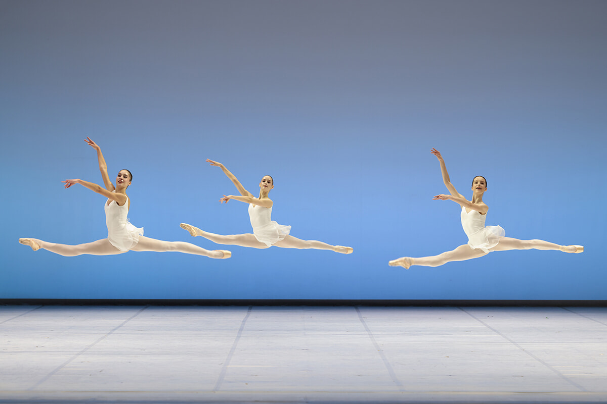 上級クラスによる学校公演が行われるのは4月。今年はカンパニーのダンサーたちのように、4月27日のマチネ公演日の朝、生徒たちのクラスレッスンが公開で開催された。公演内容はアントニー・チューダー『Continuo』、オーギュスト・ブルノンヴィルの『ゼンツァーノの花祭り』のパ・ド・ドゥ、同じくブルノンヴィルの『ナポリ」からパ・ド・シス&タランテラ、そしてモーリス・ベジャールの『ギリシャの踊り』。異なるダンスのスタイルによる作品が組み合わされたバランスの良いプログラムだった。