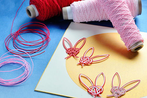 「観月茶会」で使われる山中漆器は、漆の素材自体に財運が。いい漆を普段使いするとグレードを引き上げてくれる効果があるので、ぜひお土産にしてみたい。「水引うさぎ」作り体験は、女性限定イベント。オリジナルキットで、愛らしいうさぎ形の栞作りが楽しめる。