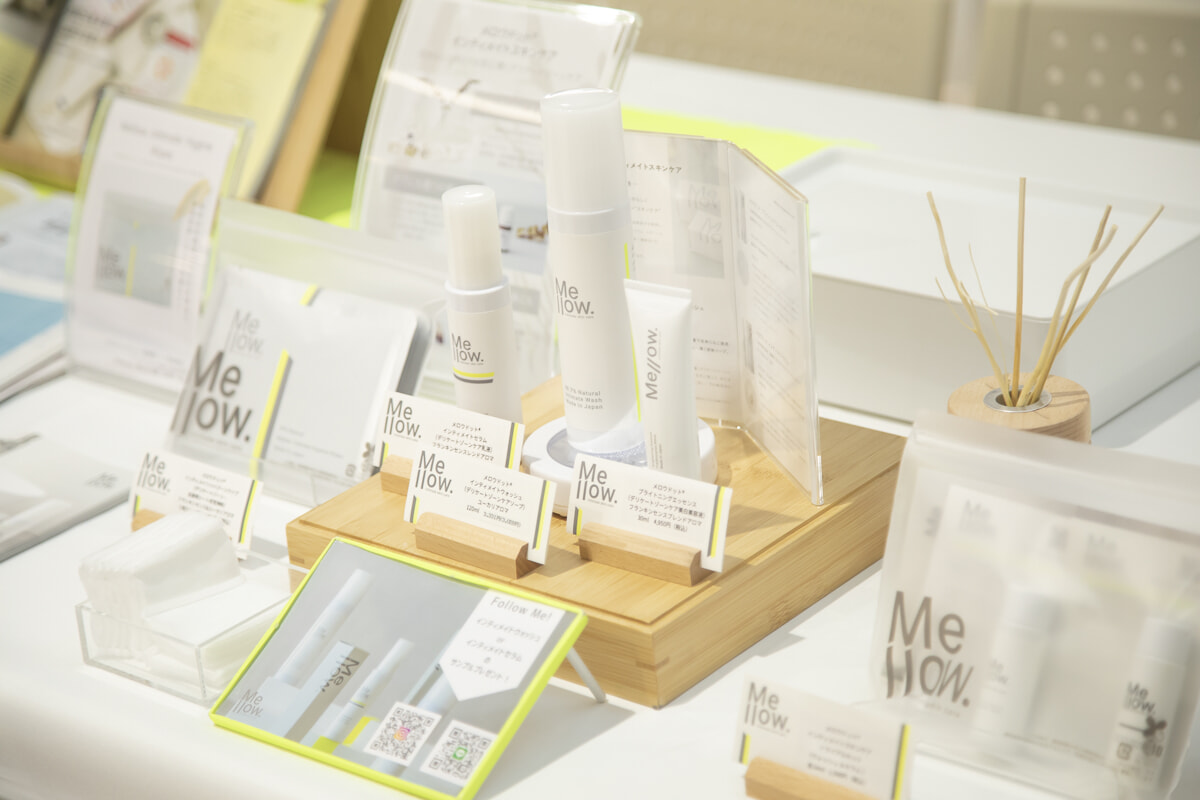 デリケートゾーンスキンケアブランド「Mellow.(メロウドット)」は、ウォッシュやセラムほか、大判のウェットワイプも出品。「デリケートゾーンはもちろん、全身に使えるので防災バッグにひとつ入れておくと便利」という。