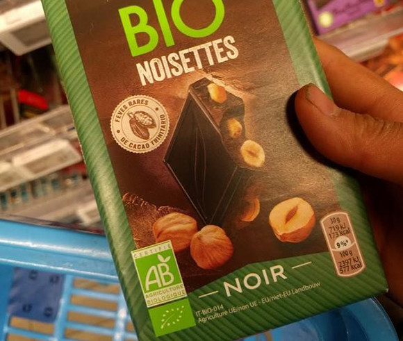 2021年5月 左下にEUオーガニックラベルと、フランスのオーガニック認証機関のひとつ、AB Franceによるオーガニックラベルが付いている photo: Saki Morita