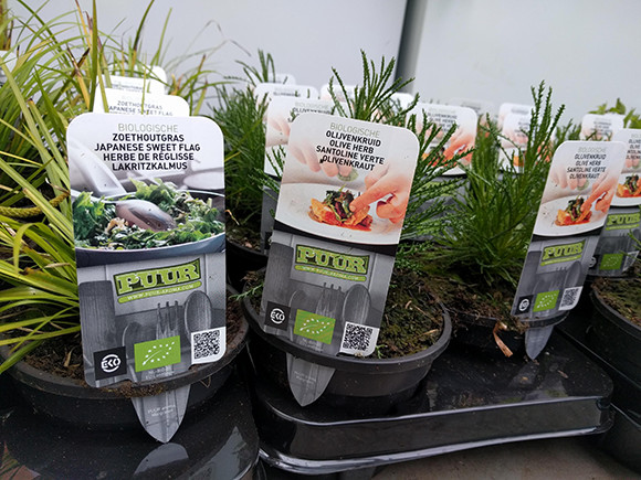 2021年5月 EUオーガニックラベルとEKOラベルがついた苗。野菜や乳製品に限らず、苗や種、加工食品にもこれらのマークが見られる。photo: Saki Morita