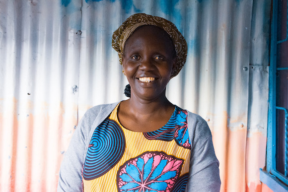 SHIFT 80のアパレルデザインは、キベラのデザイナー、リリアンさんによるもの。彼女も貧困児童に教育を届けたいと、同地で学校を運営しているという。(坂田さん提供)