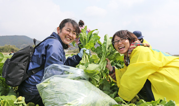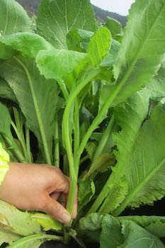 阿蘇高菜の新芽の収穫はすべて手作業で行われるという。photography : Aso Sato Farm