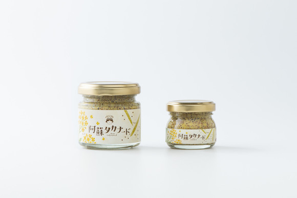 阿蘇高菜の種を使って作ったタカナード。道の駅や地元空港などでお土産として販売されているほか、阿蘇さとう農園のウェブサイトでも購入できる。photography : Aso Sato Farm