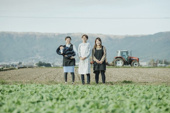 阿蘇さとう農園の佐藤智香(中央)。同世代のスタッフたちと事業を進めている。photography : Aso Sato Farm