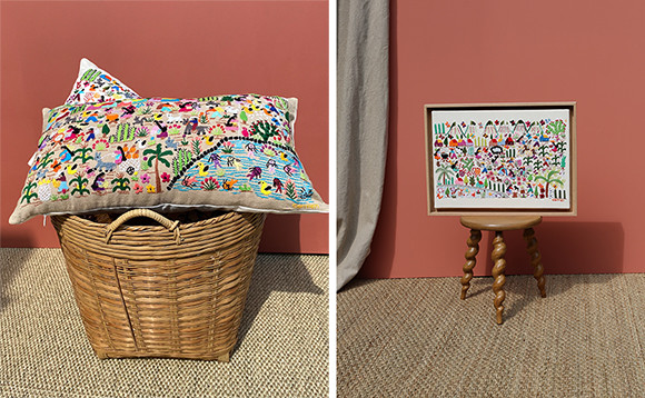 パリでは9月15日からガリエラ美術館で『フリーダ・カーロ』展(9月15日〜2023年3月5日)が始まる。美術館のブティックで、レガドのクッションOTOMIが10月15日から販売されることが決まったそうだ。フリーダ・カーロの絵画の中にもメキシコの職人仕事によるオブジェが描かれていて、その中の1つ、くり抜いて乾かしたカボチャの皮にペイントを施した器はレガドのe-shopでも販売している。スペイン、モロッコ、ポルトガルといった近隣国の職人たちと仕事をするフランス女性は多いけれど、シャルロットが選んだのはメキシコの職人たちだった。それには訳がある。