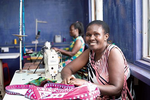 卒業生が憧れの存在になるよう、モデルには現地の学校のOB、OGを起用。縫製作業による雇用も生まれているという。