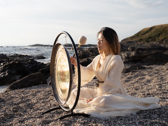 ゴング(Gong)は日本語では銅鑼。さまざまな文化圏の儀式や宗教的な行事に古くから使われてきた楽器で、横たわってその音に心身を委ねるだけで、深い瞑想状態に導かれるという。ゴングの音は、脳を深いリラックスした状態に導き、短時間でも脳や身体の疲労回復、自律神経を整える効果があるとも言われており、海外では急速に普及しているメディテーションだ。