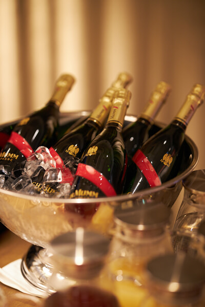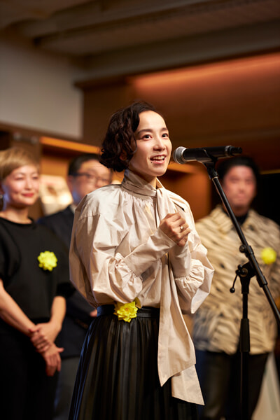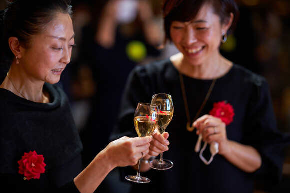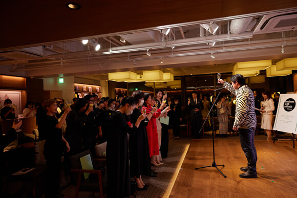受賞式ののち、阿座上の発声で懇親会がスタート。乾杯は老舗メゾンのマム。勝利の象徴でもあり、人々の挑戦や達成を祝うシャンパーニュだ。