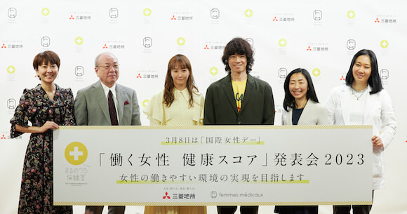 3月8日に開かれた「働く女性 健康スコア」発表会には、藤本美貴さん、庄司智春さん夫婦も出席。女性特有の健康課題について、庄司さんは「男性が踏み込んじゃいけないと思っていたけれど、そうじゃない。踏み込んでいいし、男性はその踏み込み方もマナーとして学んだ方がいいと思った」と語った。提供: まるのうち保健室