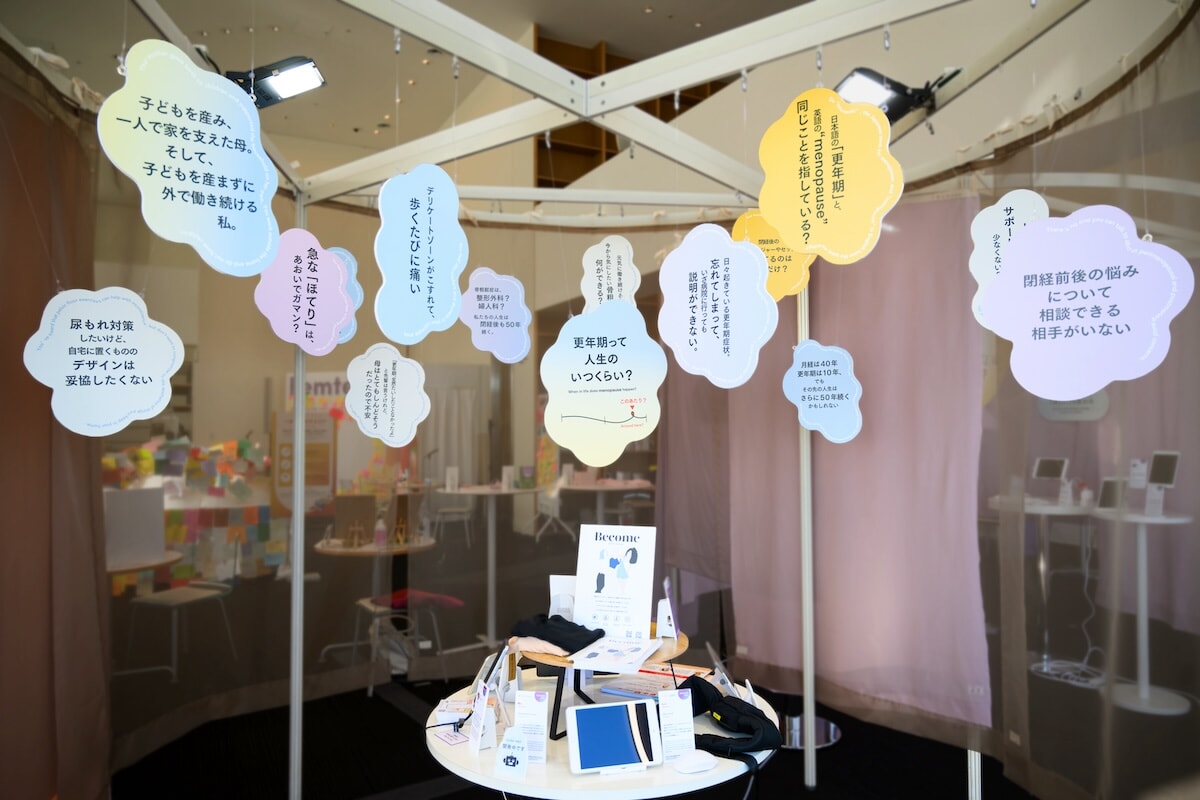 更年期についての最新の研究や、デバイスなどが展示されているスペースも。