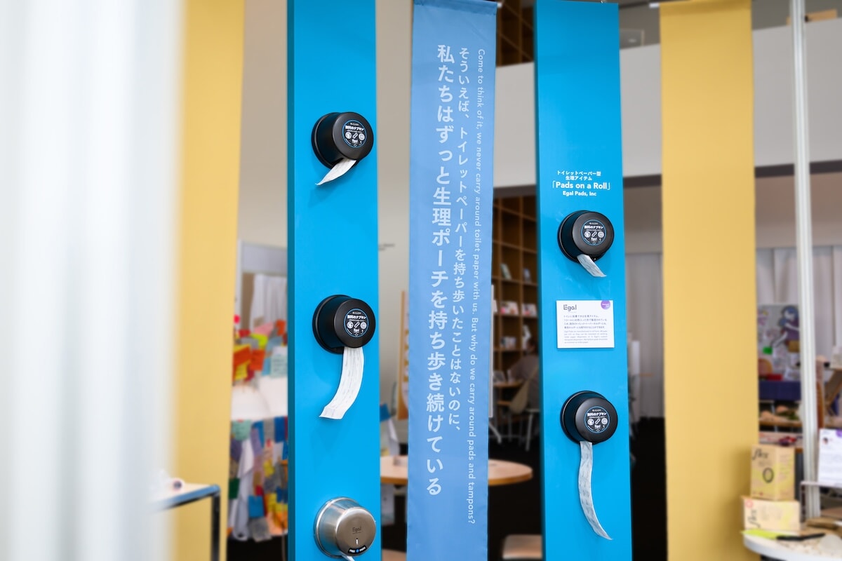 まだ日本で体験できない世界のフェムテックプロダクトの展示もあり、なかには「生理の貧困」へのアプローチのひとつとなるトイレットペーパー状の生理用品や、視覚障がいを持つ方が経血とおりものを判別しやすいようにするデバイスなどもあり、訪れた人たちの関心を引いた。