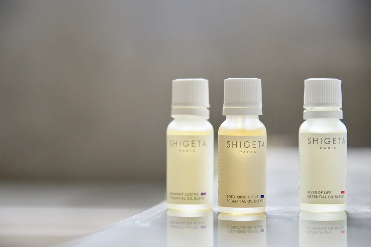 シゲタのエッセンシャルオイルは、ブランド創立時にCHICOさん自らがブレンドしたマスターピース。100%ピュア&ナチュラルな植物のエッセンスが、心身のバランスを整える手助けをしてくれる。