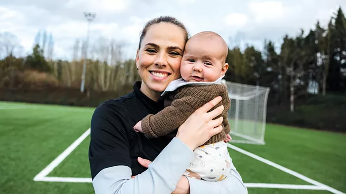 出産後、サッカー選手のサラ・ビヨルク・グンナルスドッティルは給与減額の撤回を求めて奮闘しなければならなかった。photography: Puma