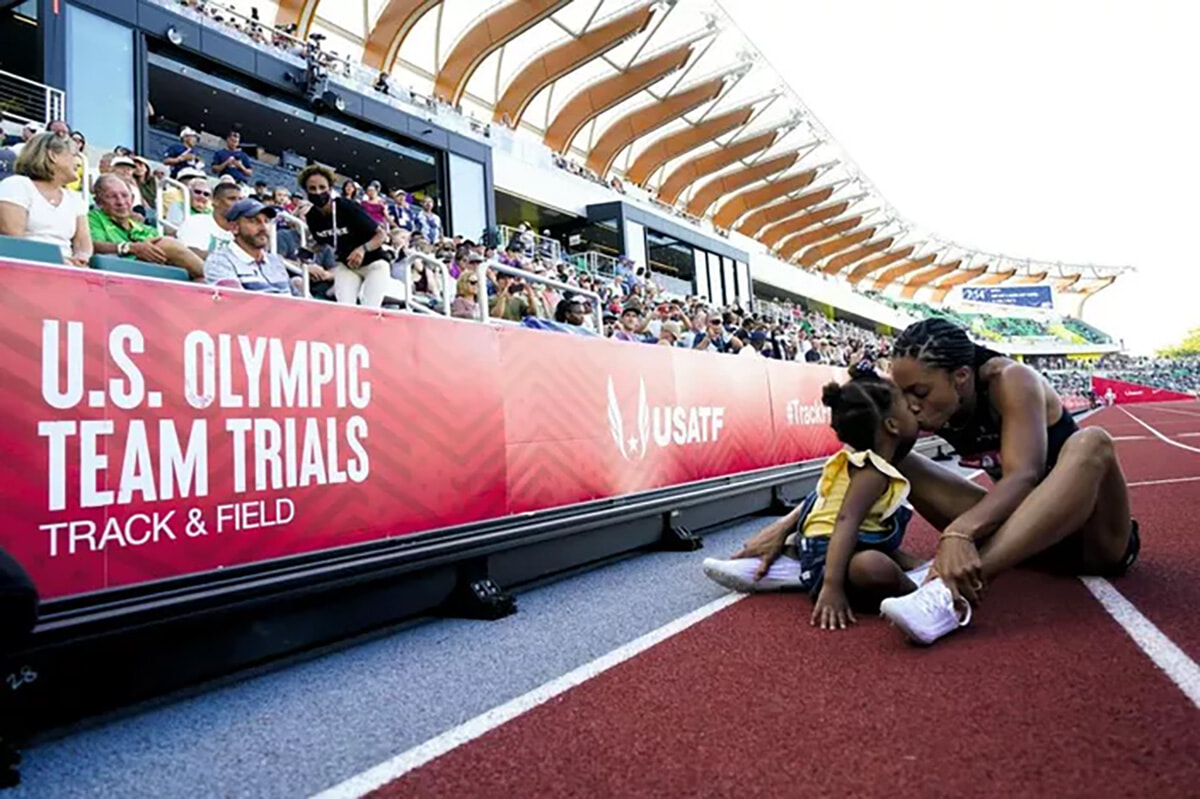 陸上選手アリソン・フェリックスはスポンサーから提示された契約料70%減額の撤回を求めて奮闘しなければならなかった。photography: Ashley Landis/AP