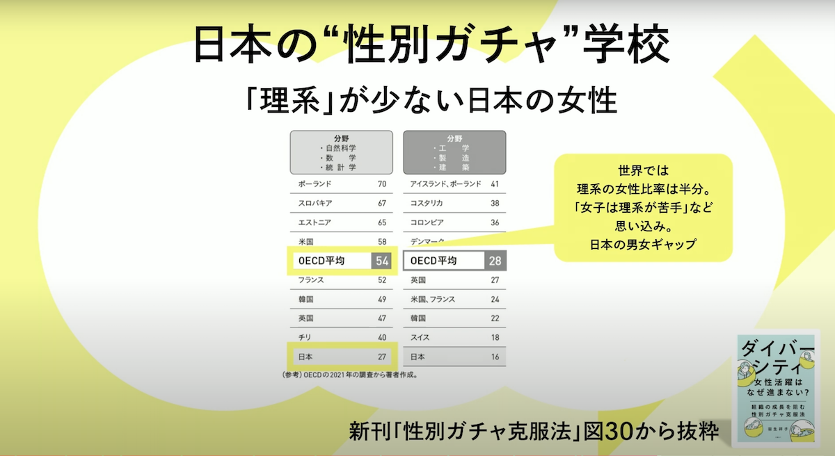 とはいえ、なぜ女性起業家が少ないのか? やはりその根底にあるのはジェンダーギャップである。「性別ガチャは国、会社、学校、家庭などさまざまなレベルで起こっています」