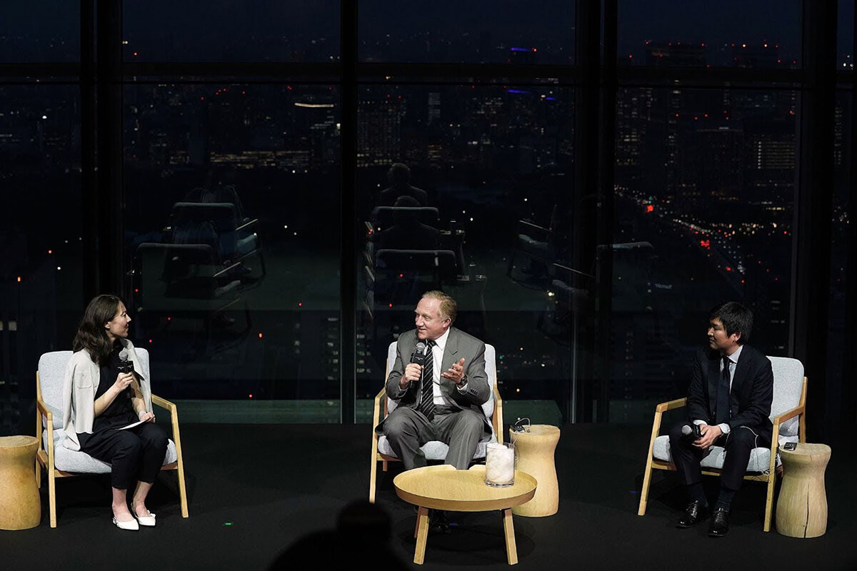 授賞式に際し、ステージではケリング会長兼CEOのフランソワ=アンリ・ピノーと日本発バイオスタートアップのスパイバー代表執行役の関山和秀による対談が行われた。
