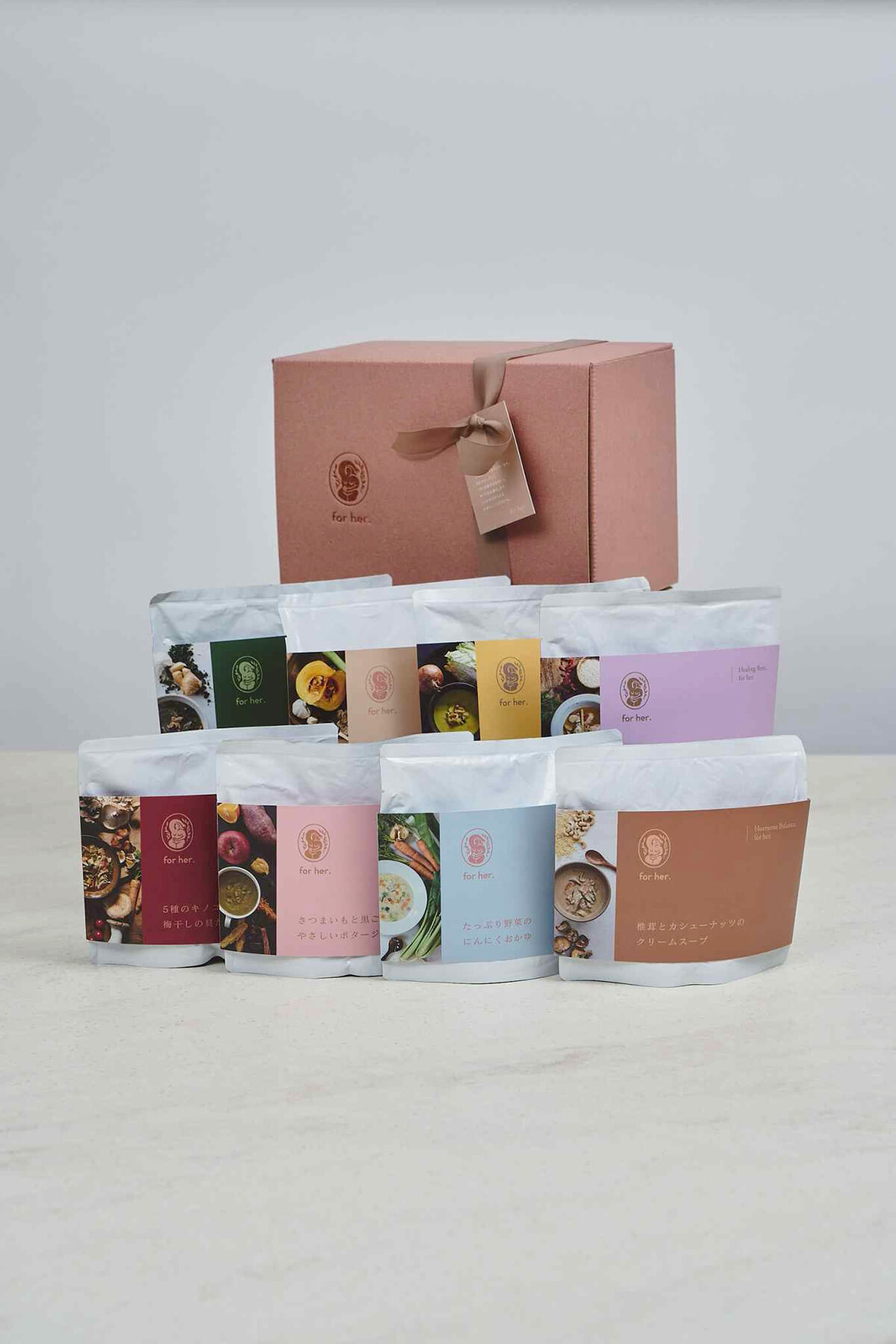 自身の経験をもとにスタートしたフォーハーの製品には優しさがあふれている。アメリカのドゥーラが教えてくれたたレシピを参考にしつつ、薬膳や東洋医学の考えを取り入れ、日本人の味覚に合うように改良を重ねたスープには、かぼちゃやさつまいも、ごま、生姜など身体にいい食材がたっぷり。常温保存が可能で、慌ただしい毎日をサポートする心強い味方になっている。