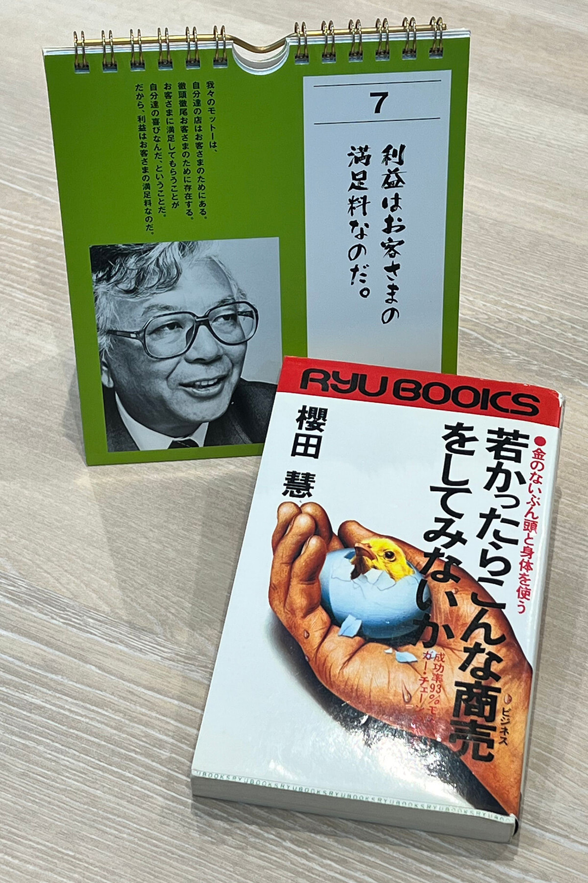 片山の母方の祖父はモスバーガーを創業した故・櫻田慧*で、会社を経営するにあたって、櫻田の言葉が書かれたカレンダーや著書が大切な支えとなっているという。