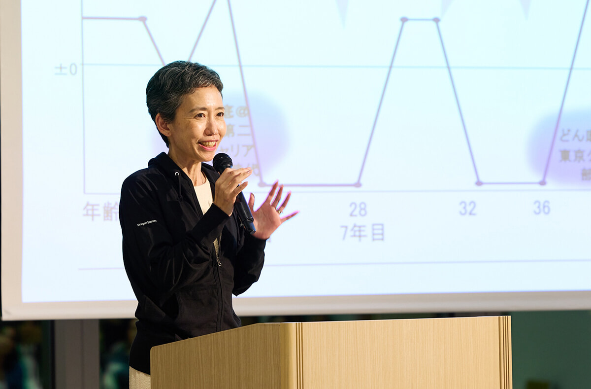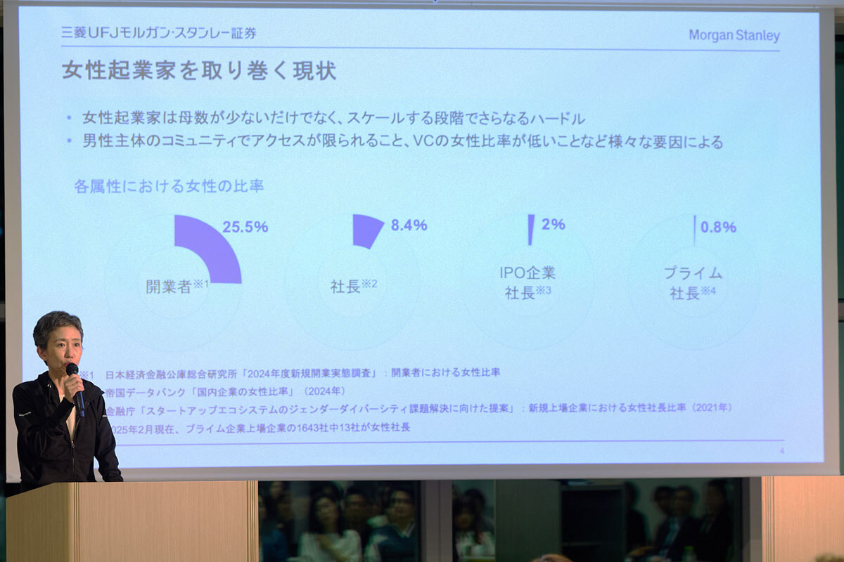 BWAピッチコンテストの特別セッションに登壇した三菱UFJ モルガン・スタンレー証券チーフ・サステナビリティ・オフィサーの南里彩子。
