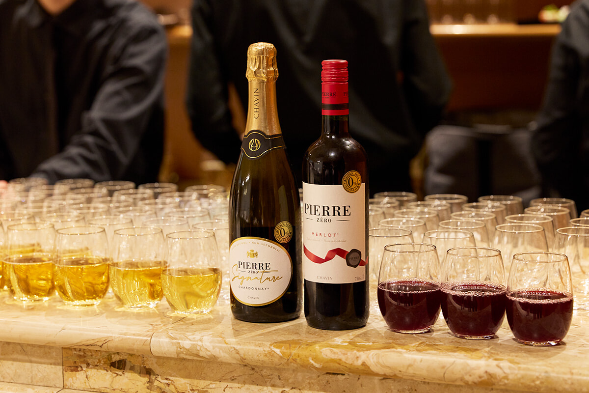 お酒を飲む人も飲まない人も、すべての人が乾杯の瞬間を楽しめるようにーーモトックスからはアルコールゼロ・ワイン「ピエール・ゼロ」が提供された。