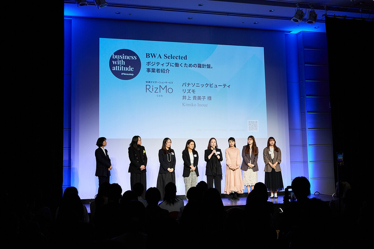 フィガロジャポン1月号では、アワード受賞者の発表とともに、「私らしく、ポジティブに働くための羅針盤」というテーマで、自分らしく働く女性を後押しする14の事業をBWA事務局が選出。うち8事業の担当者が来場し、それぞれの商品やサービスに込めた思いを1分間で語った。