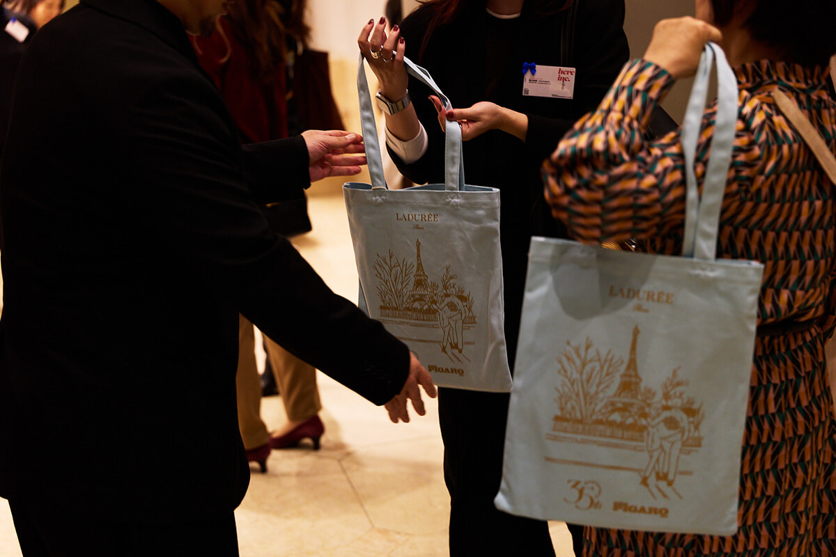 来場者にはフィガロジャポン35周年を記念したラデュレのトートバッグのお土産も配られた。