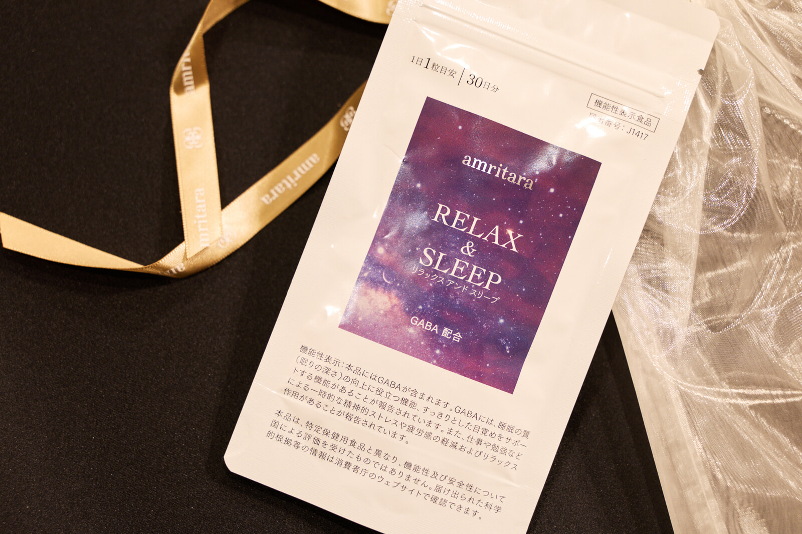 大麦乳酸発酵液由来の機能性関与成分GABA(γ-アミノ酪酸)の働きで、睡眠の質の向上とスッキリした目覚めをサポートしてくれるアムリターラの「リラックス アンド スリープ」。