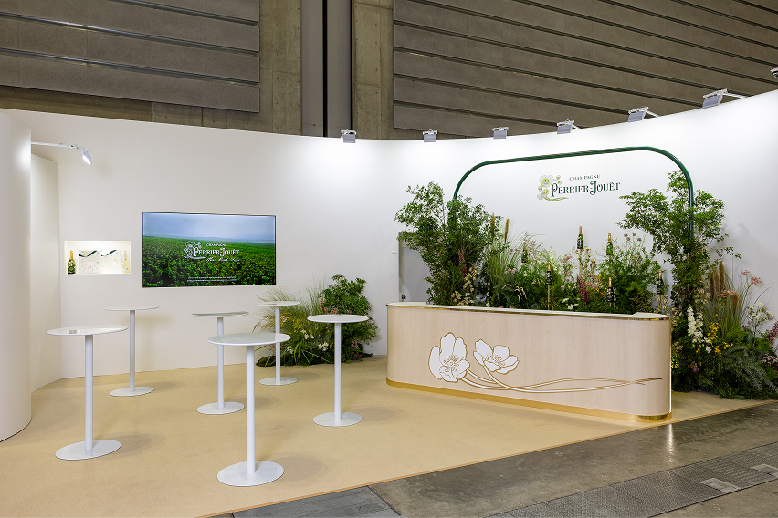 会場内では、白い花々を思わせる優雅な「ペリエ ジュエ ベル エポック 2016」(写真左)をはじめとするペリエ ジュエのシャンパーニュが提供された。