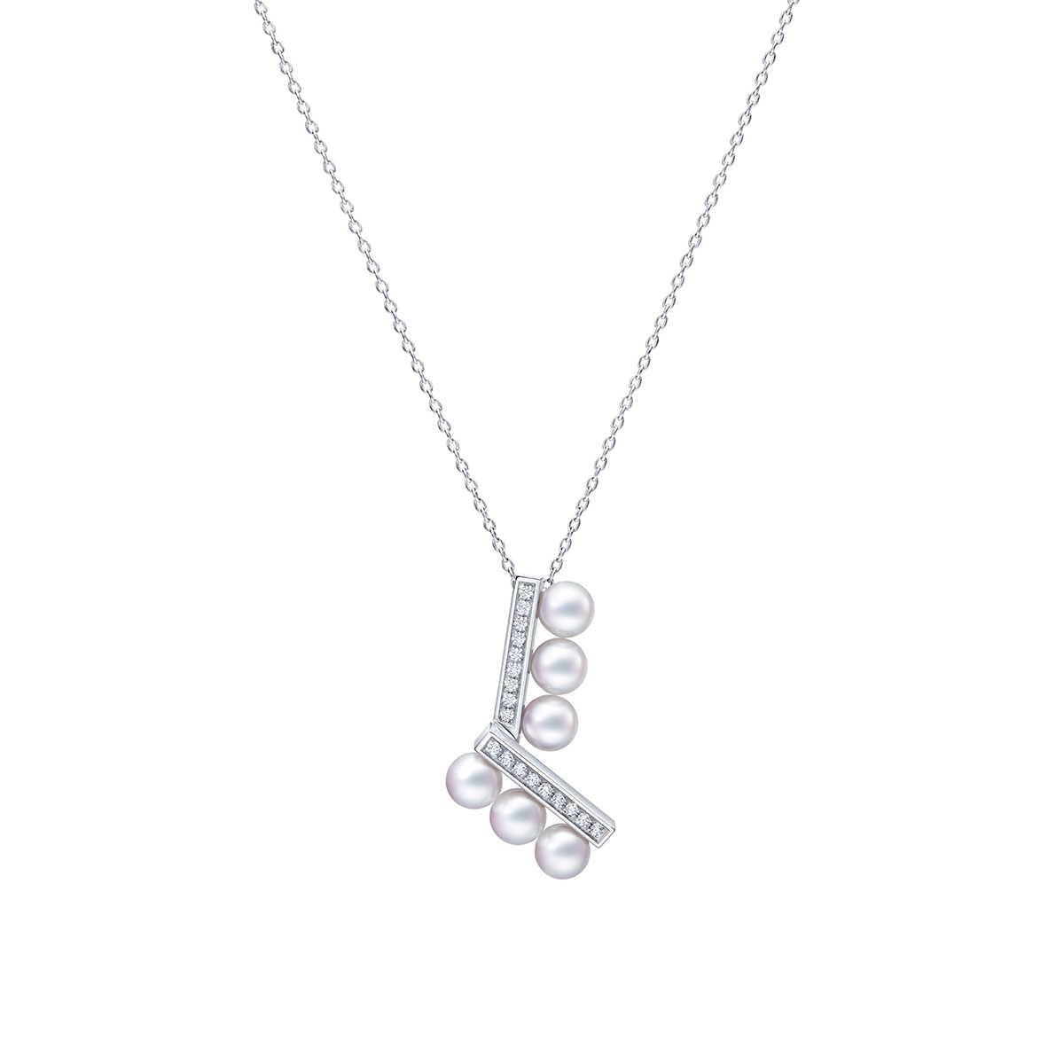 粒が揃った最高品質の真珠をアートのようにセッティング。ダイヤモンドと優美なハーモニーを奏でるバランスの新作にネックレスをノンシャランに重ね、パリジェンヌの遊び心を表現。