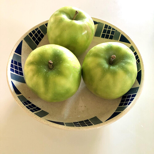 「はつ恋ぐりん」という名のりんご。グラニースミス系統の品種で料理しても酸味がしっかり残っておいしい。