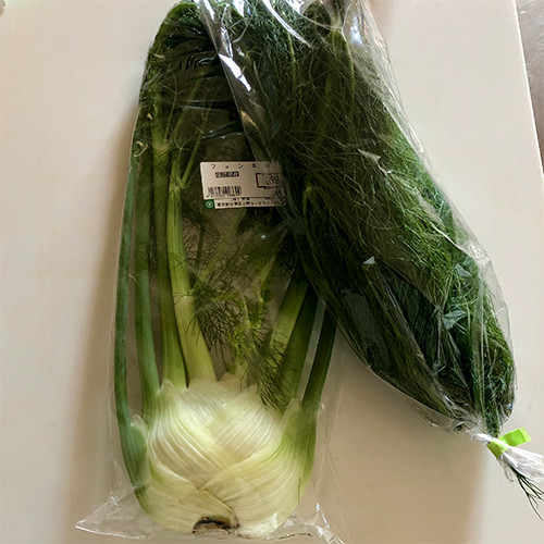 輸入ものがメインだったフェンネルですが、最近は国産ものを見かけることが多くなって、フェンネルを愛してやまない私は嬉しい限り。しかも安い値段で売っていることが多く、今日は福岡産のふわふわワサワサとした葉がたっぷり付いたものがなんと398円で売っていました。スーパーの契約農家コーナーなどをのぞくと、時々、こういう野菜を見かけます。日本の農業のリアルが少し垣間見えるよう。