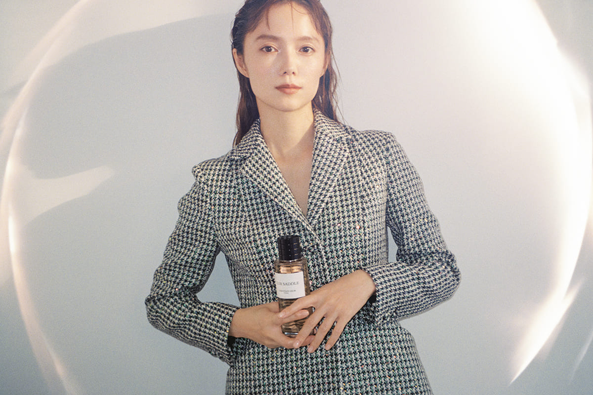 幾重にも重なり合う香りのコンポジションがひとつのフレグランスを作り上げるように、宮﨑あおいの経験と思考が、たおやかな精神と人生を大胆に楽しむ力強さを築き上げている。レザーノートの概念を刷新する「キュイール