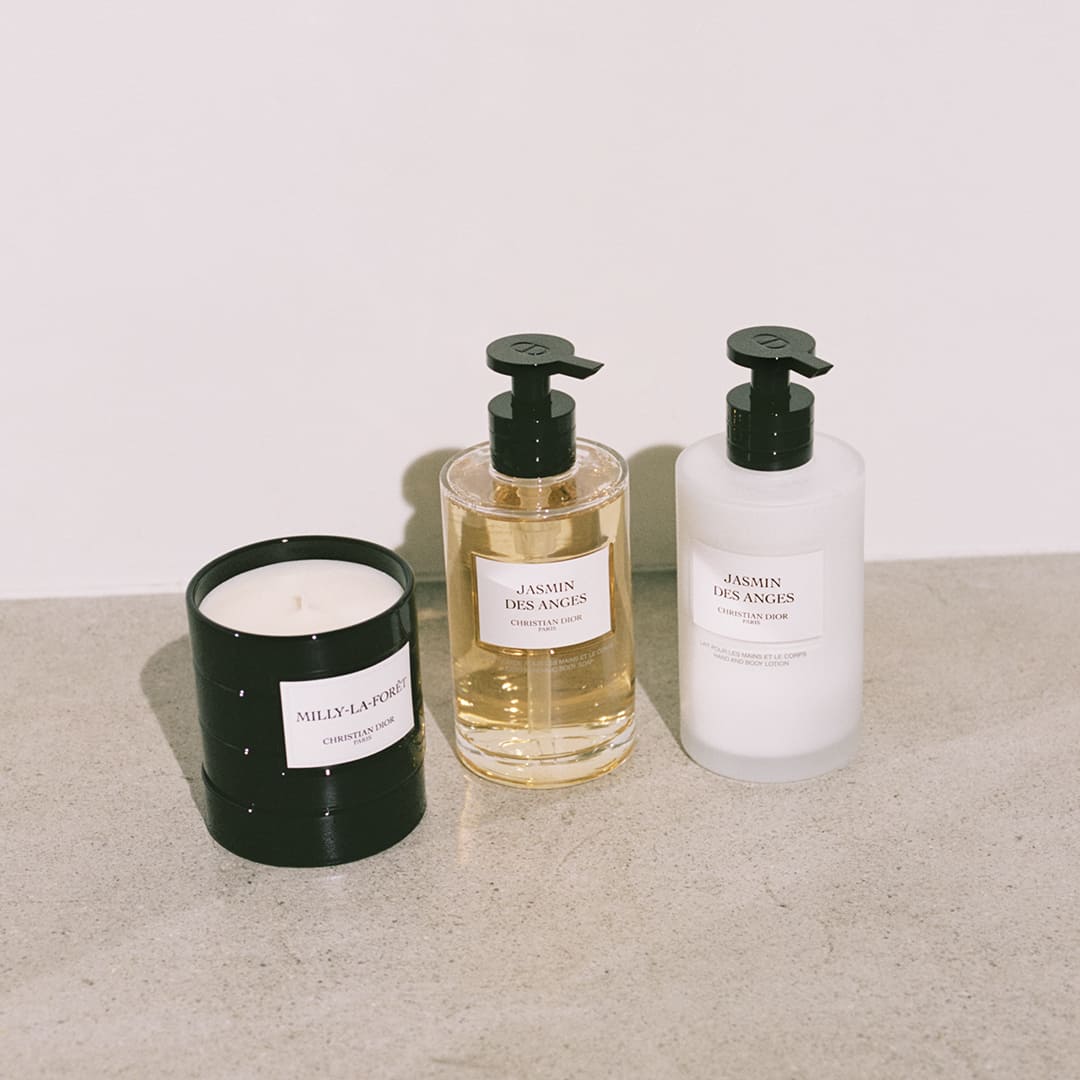 ディオールが大切にする庭園をインスピレーション源に誕生した「ミリー ラ フォレ」などが揃う特別な香りのキャンドルコレクションのほか、フレグランスとのレイヤードも楽しめるボディケアラインも。ジャスミン デ ザンジュは、ジャスミンにアプリコットと蜂蜜が刺繍された美しいレースのように甘美なフローラルの香りが楽しめるベストセラー。