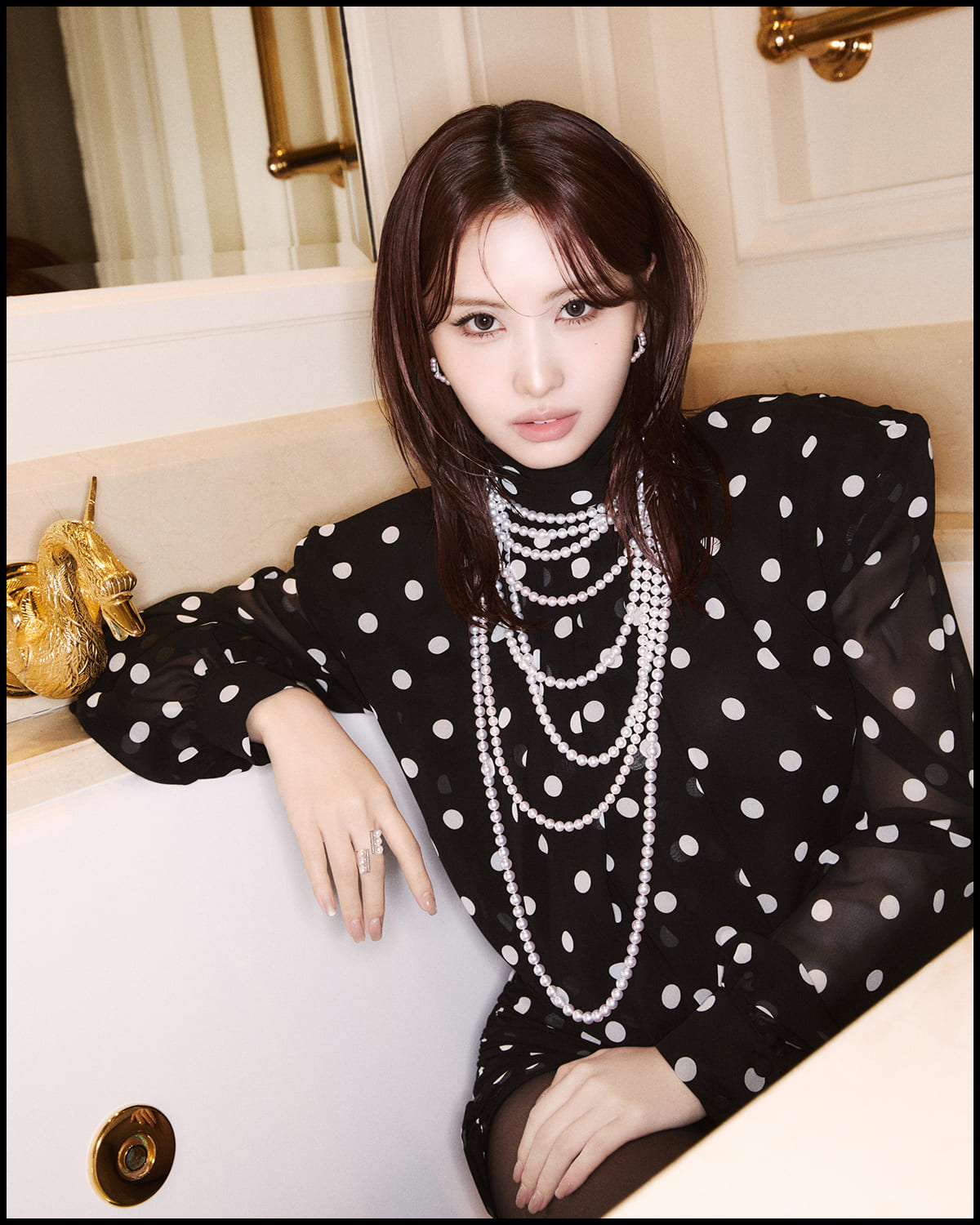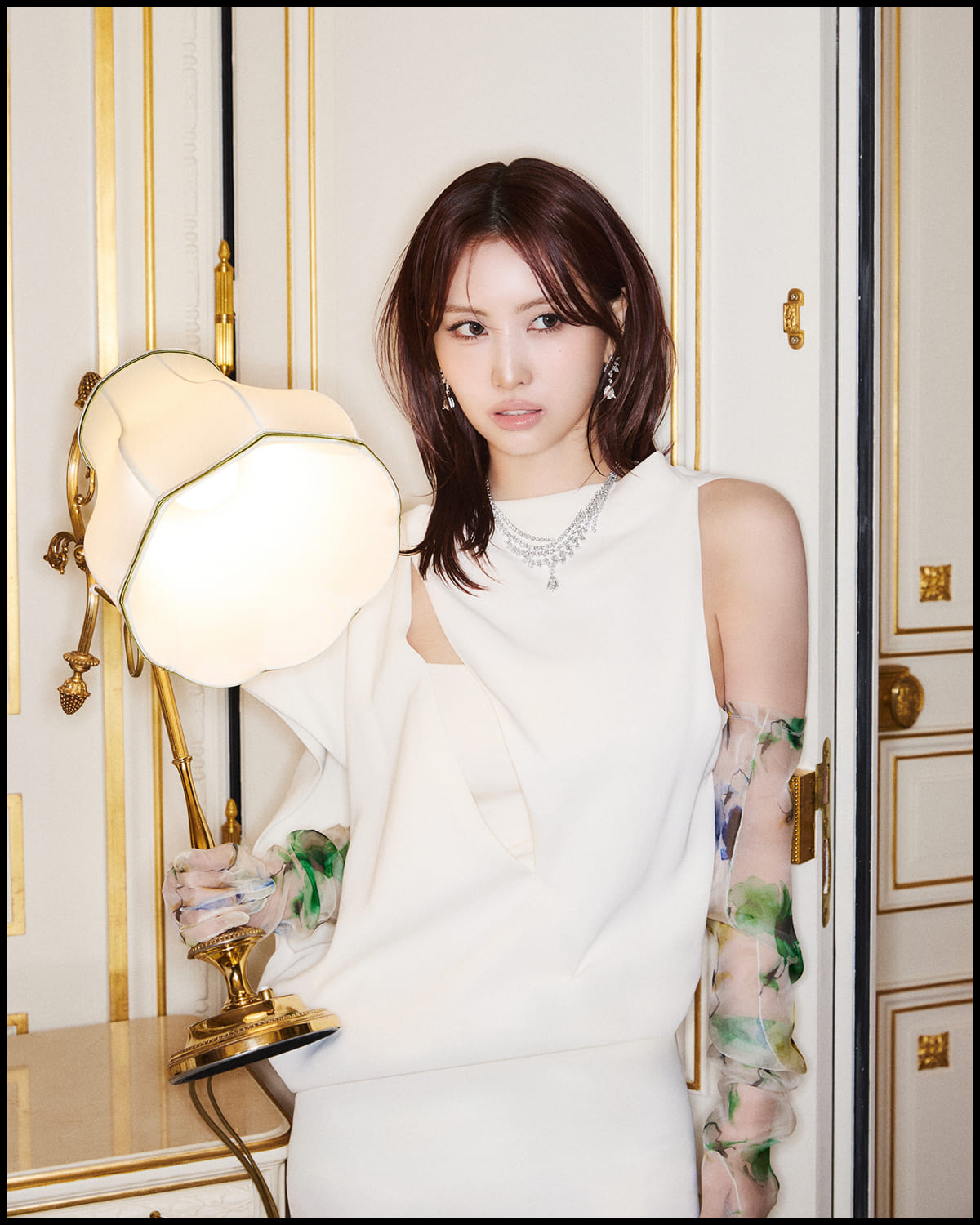 TWICE MOMOを輝かせる、パールやルビー、ダイヤモンドの荘厳な煌めき。